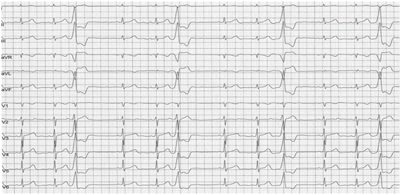 Xəstənin şikayəti yoxdur, 24 saatlıq ritm holterində mədəcik ekstrasistoliyalarının sayı 2% qeyd edilir.