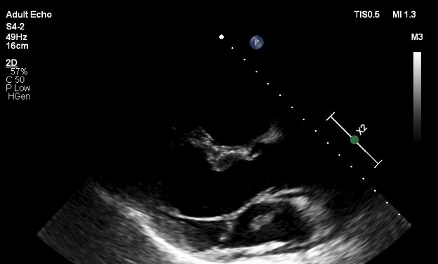 45 yaşlı kişi xəstə sağ ayaqda anidən yaranmış şişkinlik, kəskin ağrı, təngnəfəslik şikayəti ilə xəstəxanamızın təcili tibbi yardım şöbəsinə müraciət etmişdir. Xəstə 10 il əvvəl mielit keçirmiş və sağ aşağı ətrafın hissəvi parezi mövcuddur. Passiv həyat tərzi keçirdiyini, günün çox hissəsini evdə hərəkətsiz vəziyyətdə olduğunu qeyd edir. Xəstəyə dərhal exokardioqrafiya olundu və sağ boşluqların genişləndiyi, ağciyər arteriyasının sistolik təzyiqinin artmış (50mmHg) olduğu görüldü. Daha ətraflı müayinə zamanı sol və sağ qulaqcıq daxilində də hərəkətli kütlənin olduğu görüldü. Xəstəyə transezofageal exokardioqrafiya tövsiyə edildi, lakin xəstə bu müayinədən imtina etdi. Aşağı ətraf venalarının doppler müayinəsi zamanı sağ dizaltı venanın kəskin trombozu aşkarlandı. Sol və sağ qulaqcıq daxilindəki hərəkətli kütlənin tromb (Şəkil 1,2 və 3) ola biləcəyi düşünüldü və xəstə hospitalizasiya edildi. Xəstəyə gündəlik 30 mq (15 mq x 2 dəfə) rivaroksaban başlanıldı. Sağ aşağı ətraf üçün kompression corab təyin edildi. Müalicənin beşinci günü təkrari exokardioqrafiya olundu (Şəkil 4 və 5). Bu zaman görülən hərəkətli kütlələr görülmədi, sağ mədəciyin ölçüləri normallaşmış, ağciyər arteriyasının sistolik təzyiqi isə 35mmHg-na qədər enmişdir. 21 gün sonra rivaroksabanın dozası gündəlik 20 mq təyin edildi. Sağ aşağı ətrafda hissəsi parez olması səbəbindən rivaroksaban müalicəsi qeyri-müəyyən zamana qədər davam etdiriləcək.